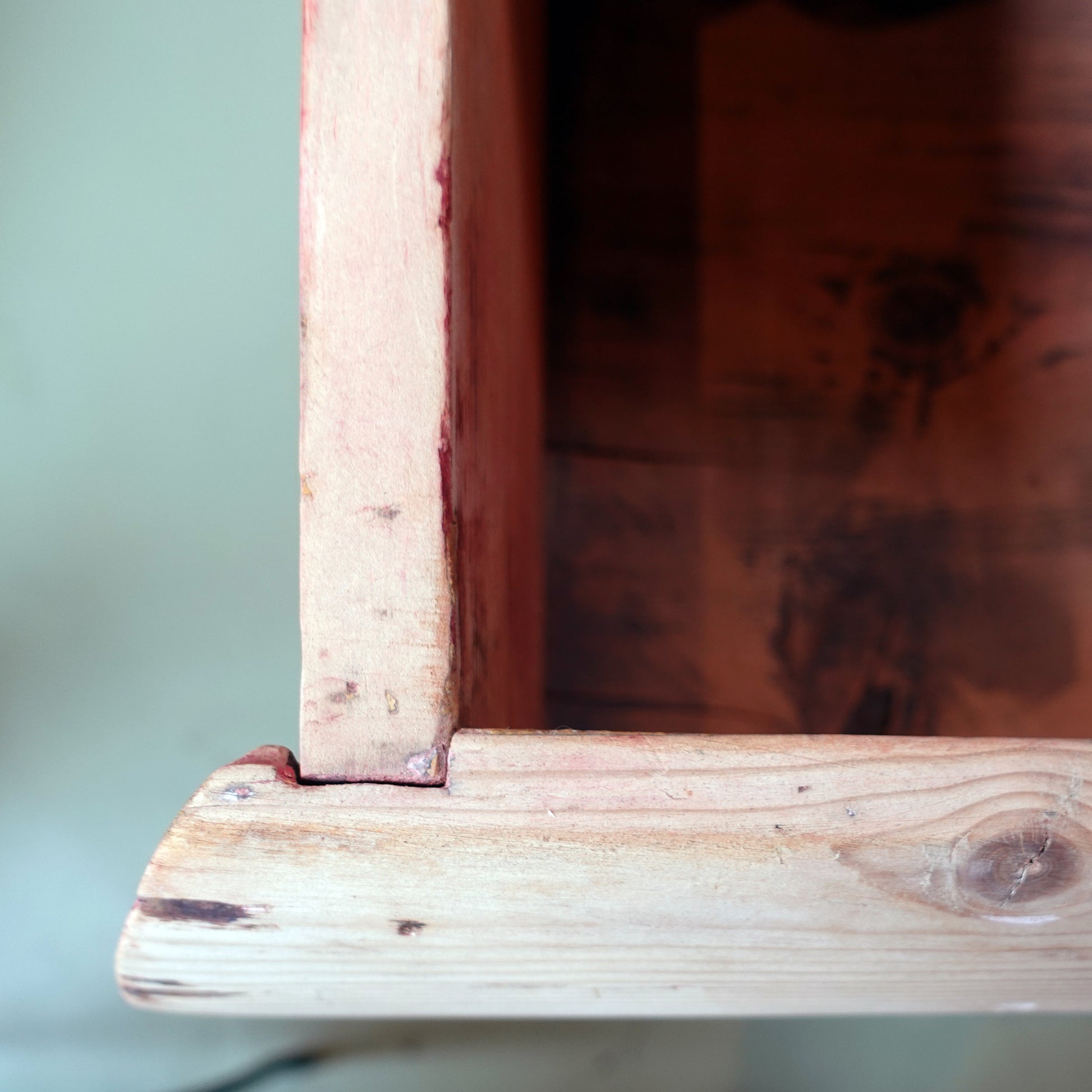 Condition: original locks still in place, although lacking key(s). Stains and old worming on interior drawers and some worming and light staining on exterior surfaces.