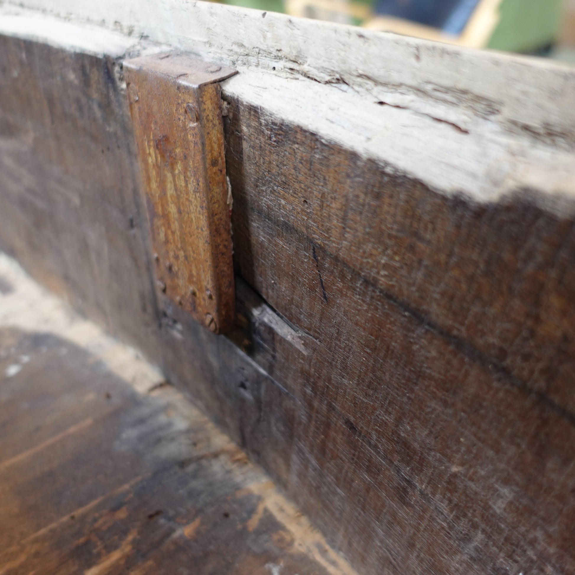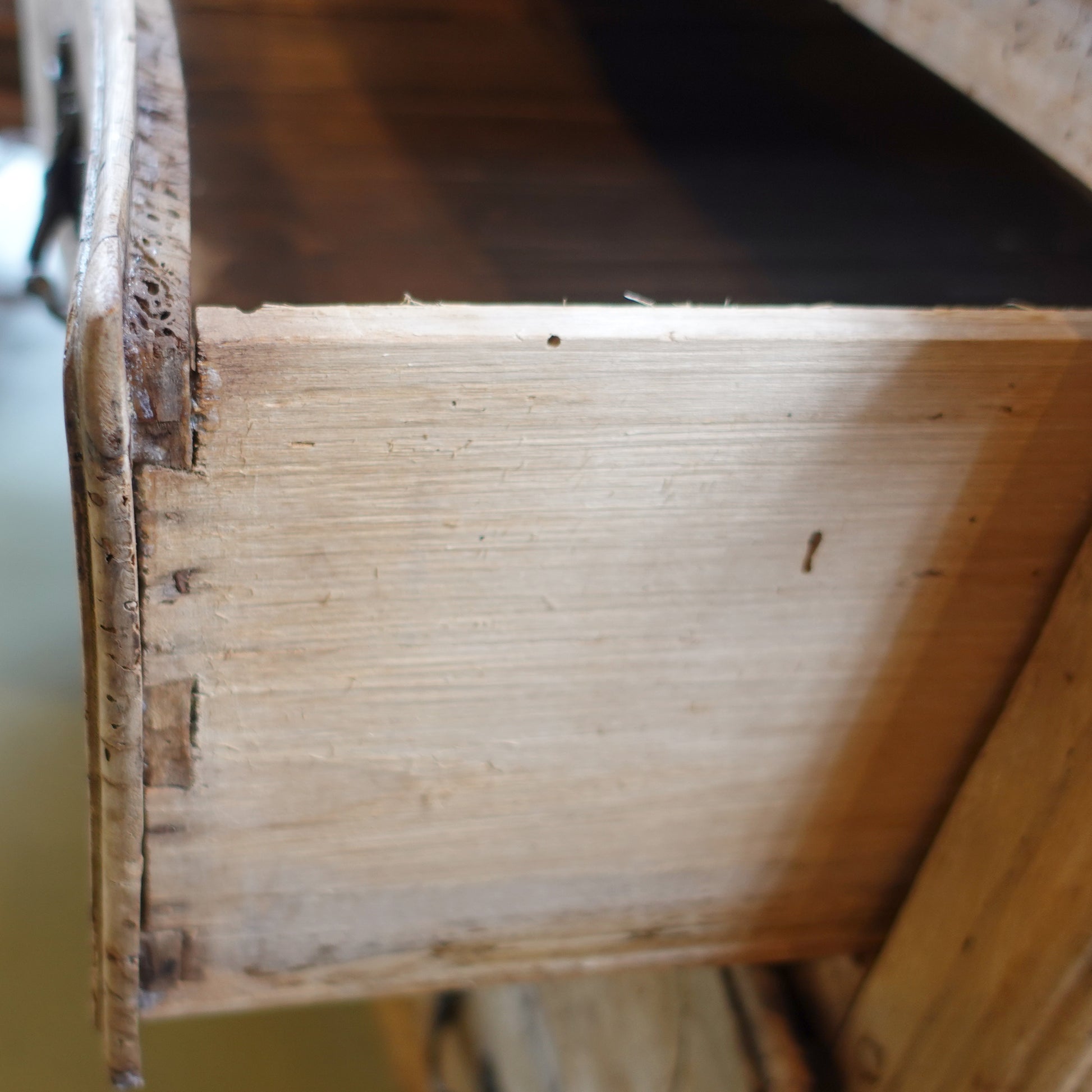 Condition commensurate with age. Old worming present on various portions of the exterior and interior, adding a unique character to some surfaces. The central draw sticks slightly but the overall dresser is sold and in superb condition. Minor nicks, dings, and some stress cracks, particularly on the interior base of the drawers.